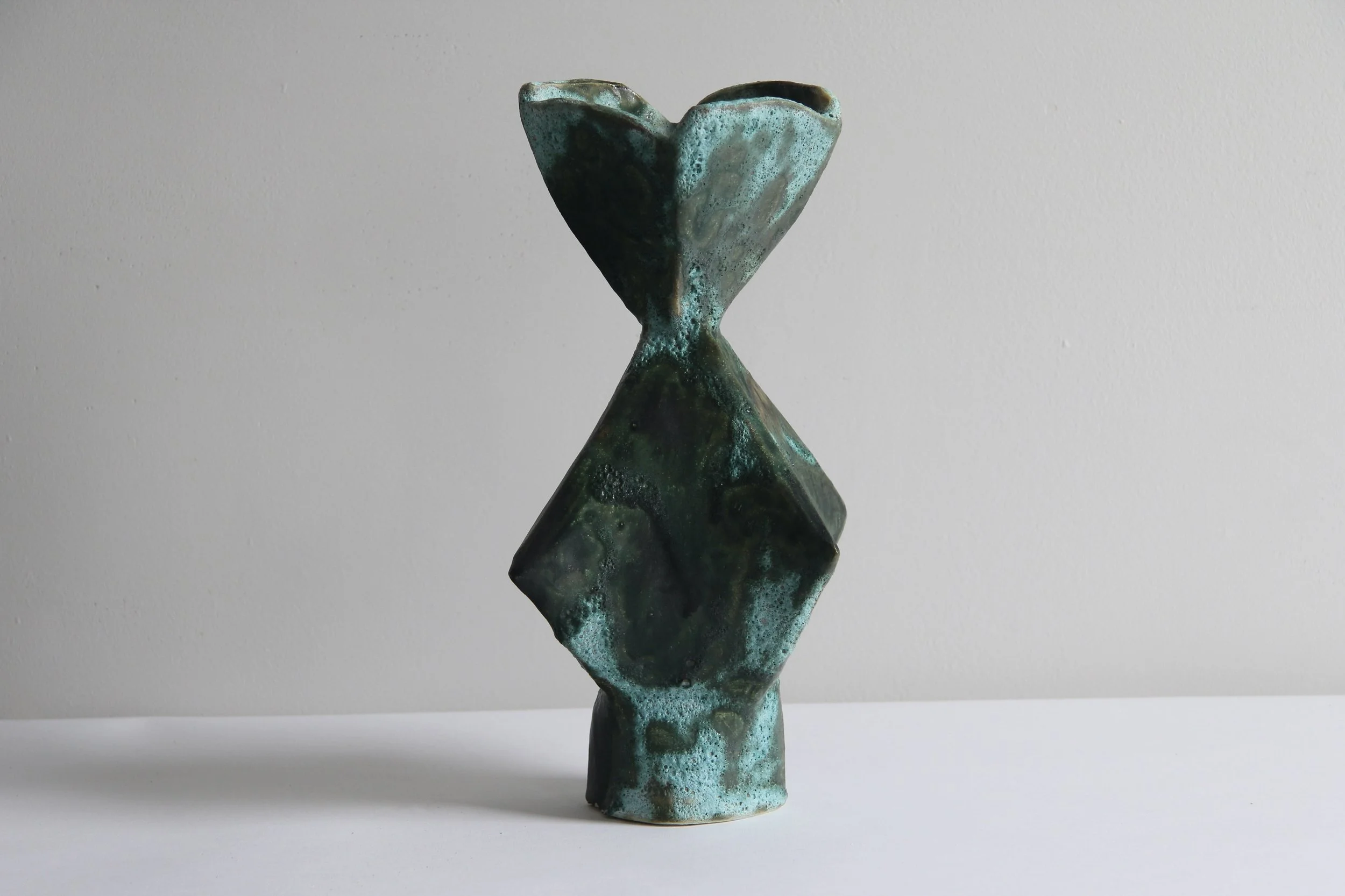 Archive Vessels 401-431 › Copper Vase Image 1 of 4 Image 2 of 4 Image 3 of 4 Image 4 of 4 Copper Vase $500.00 One of a kind handbuilt vase with volcanic copper glaze11” height Get notified by email when this product is in stock. Purchase Added! One of a kind handbuilt vase with volcanic copper glaze11” height