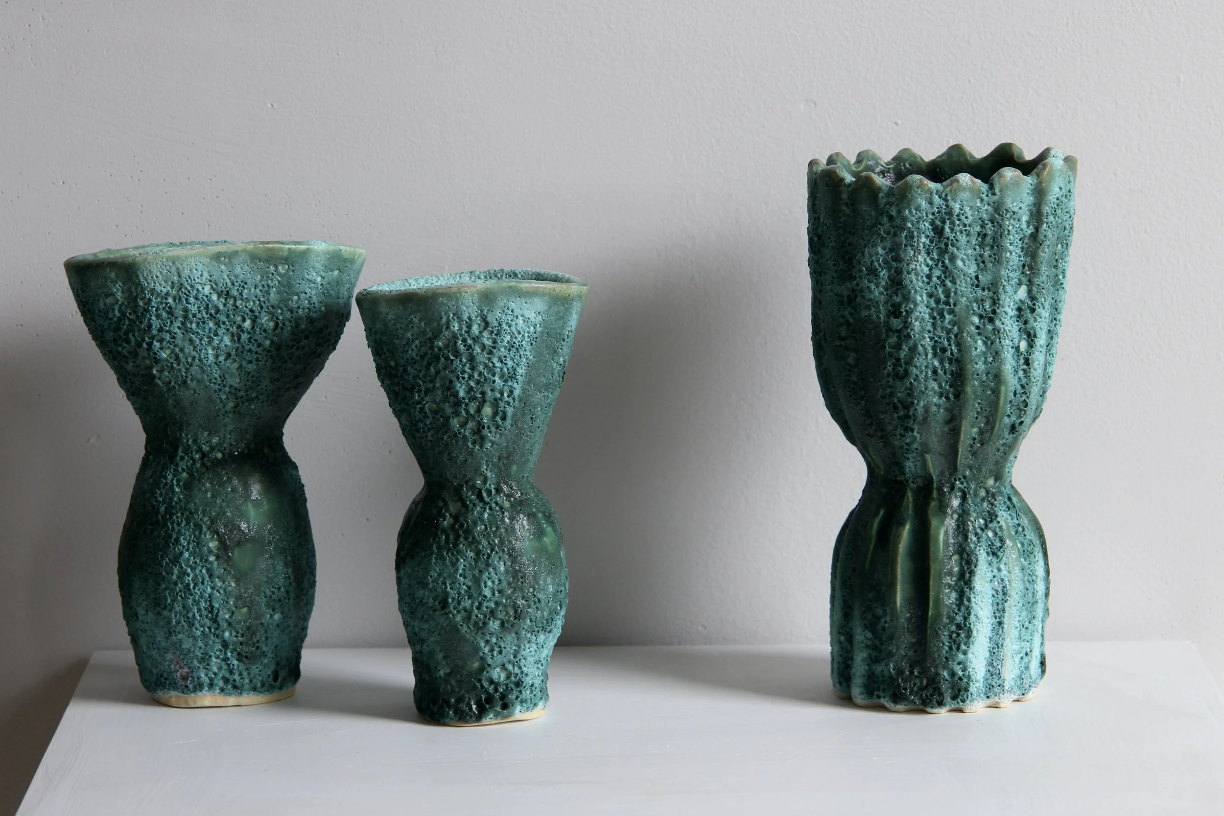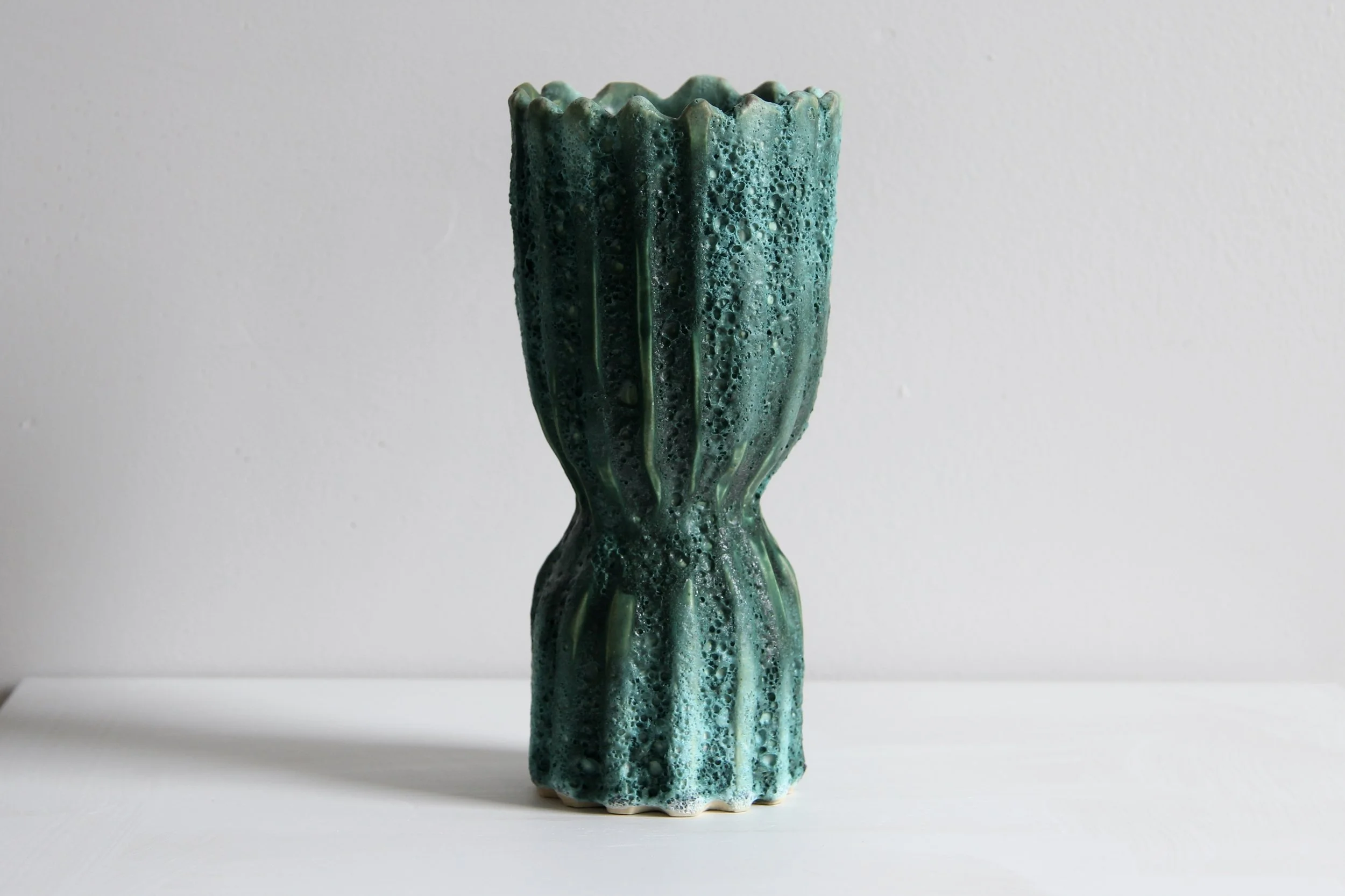 Archive Vessels 401-431 › Copper Vase Image 1 of 3 Image 2 of 3 Image 3 of 3 Copper Vase $120.00 sold out One of a kind handbuilt stoneware vase with craggy copper glazeWhite liner glaze on interior6.5” height Get notified by email when this product is in stock. Sold Out Added! One of a kind handbuilt stoneware vase with craggy copper glazeWhite liner glaze on interior6.5” height