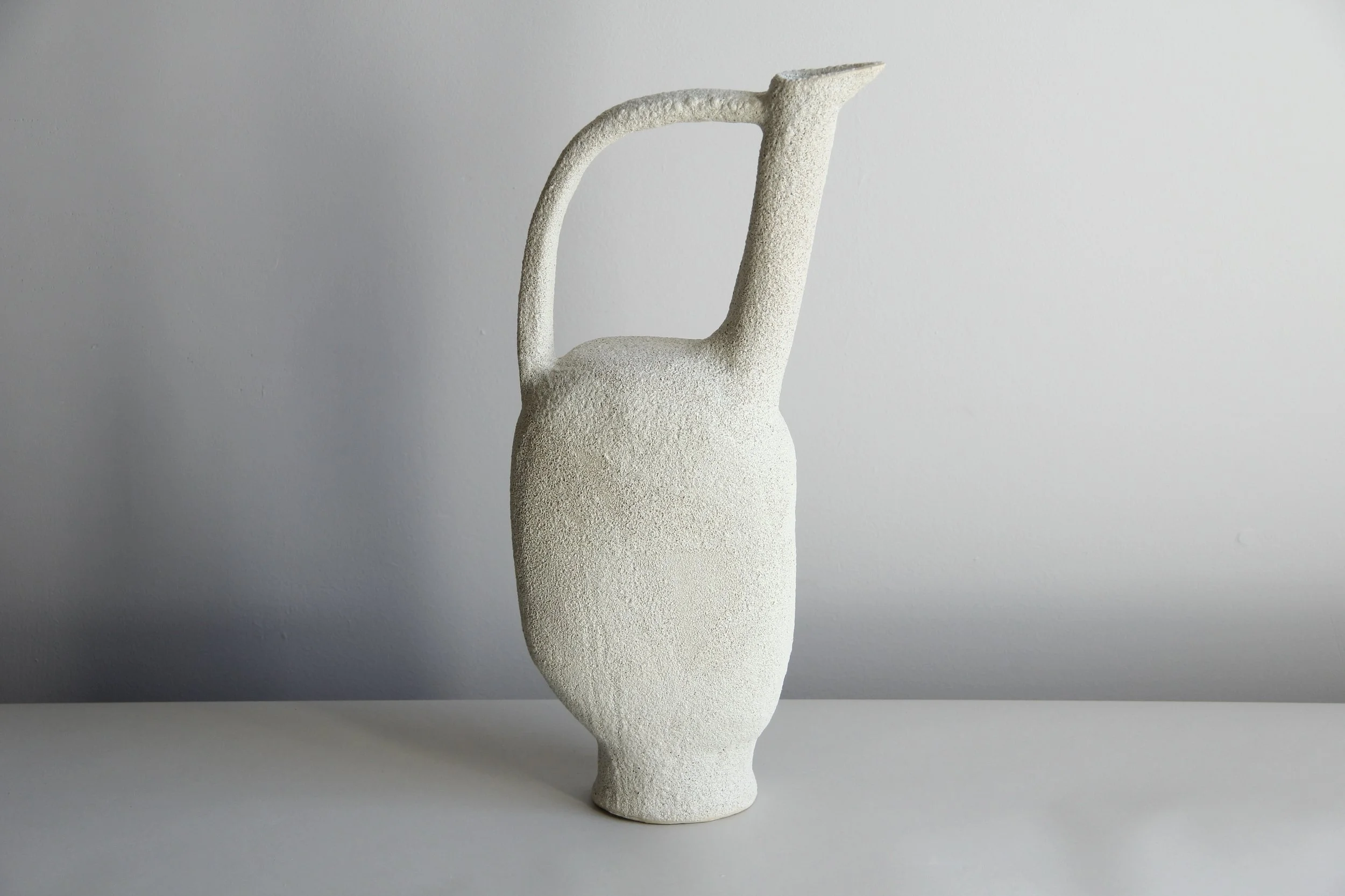 Hand built figurative vessel — white stoneware with textured creamy white glaze