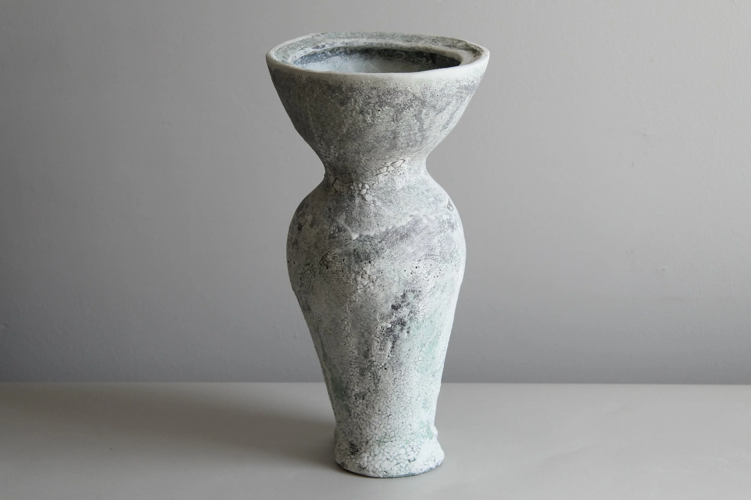 Archive Vessels 401-431 › Vessel Image 1 of 3 Image 2 of 3 Image 3 of 3 Vessel $500.00 Hand built vase — white stoneware with layered textured glazes12” height Get notified by email when this product is in stock. Purchase Added! Hand built vase — white stoneware with layered textured glazes12” height