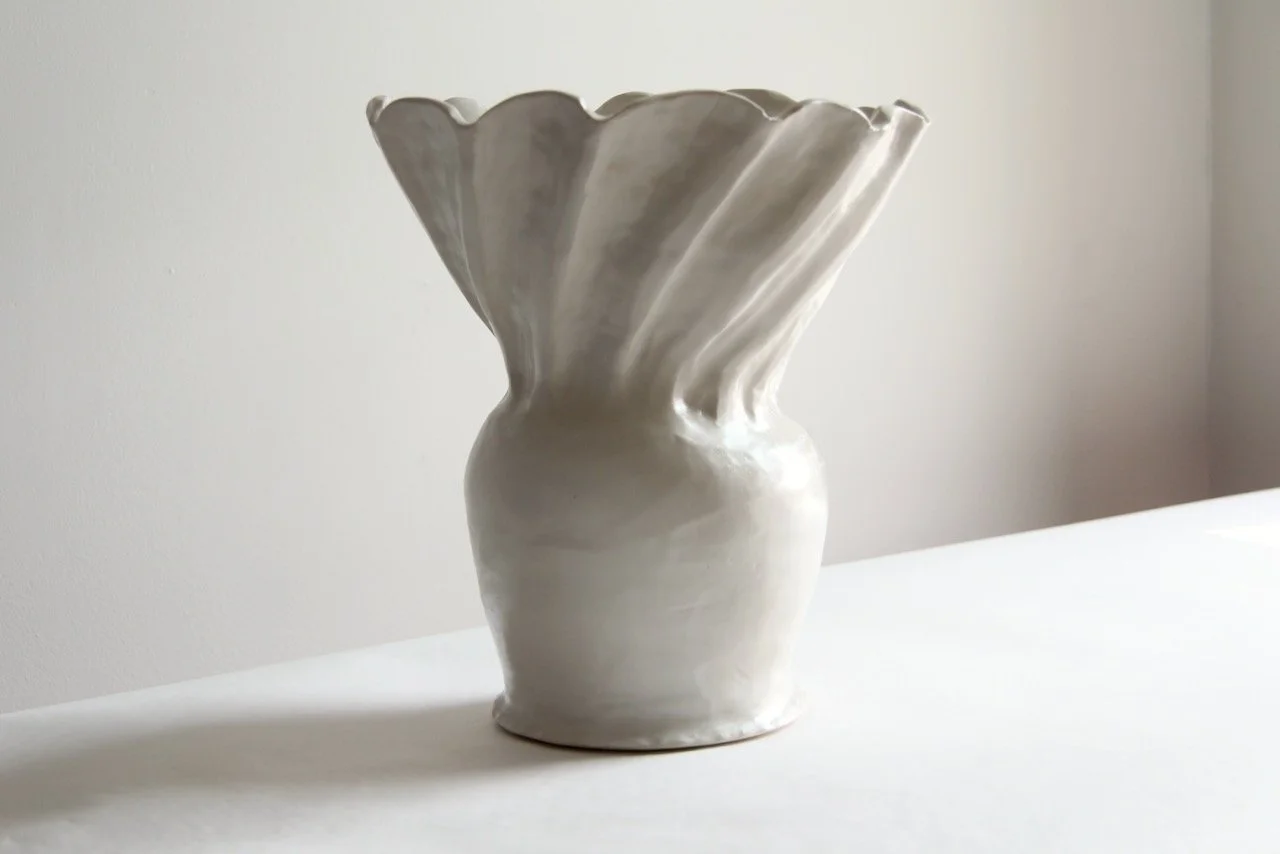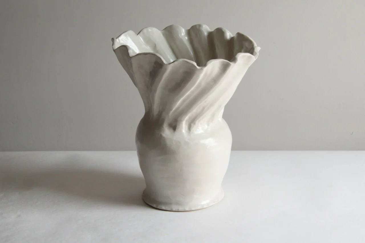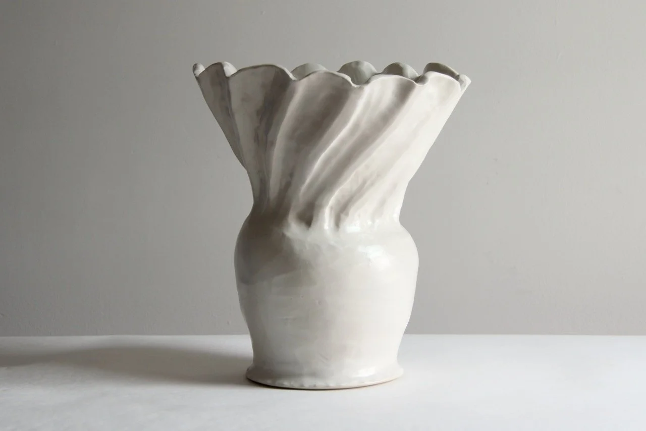 Archive Vessels 401-431 › White Pleat Vase Image 1 of 3 Image 2 of 3 Image 3 of 3 White Pleat Vase $550.00 Hand built figurative vessel — white stoneware with satin white glaze11” height Get notified by email when this product is in stock. Purchase Added! Hand built figurative vessel — white stoneware with satin white glaze11” height