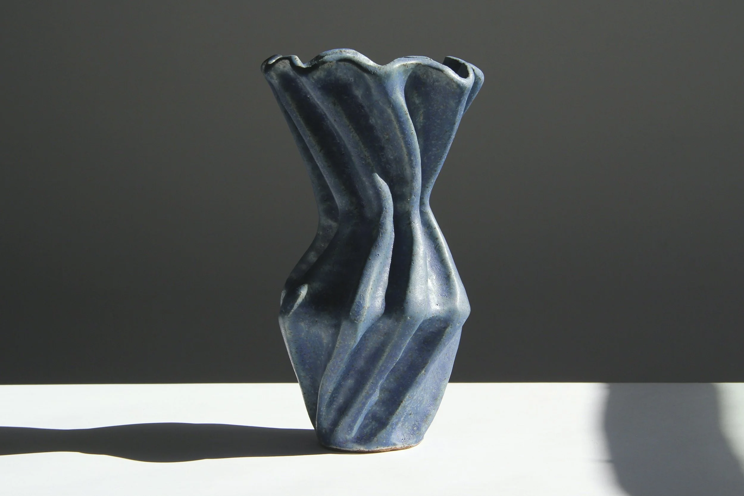 Vessels › Blue Fold Vessel Image 1 of 3 Image 2 of 3 Image 3 of 3 Blue Fold Vessel $300.00 sold out Blue pleated vase, hand built in stoneware with layered glazes9.25" height Get notified by email when this product is in stock. Sold Out Added! Blue pleated vase, hand built in stoneware with layered glazes9.25" height
