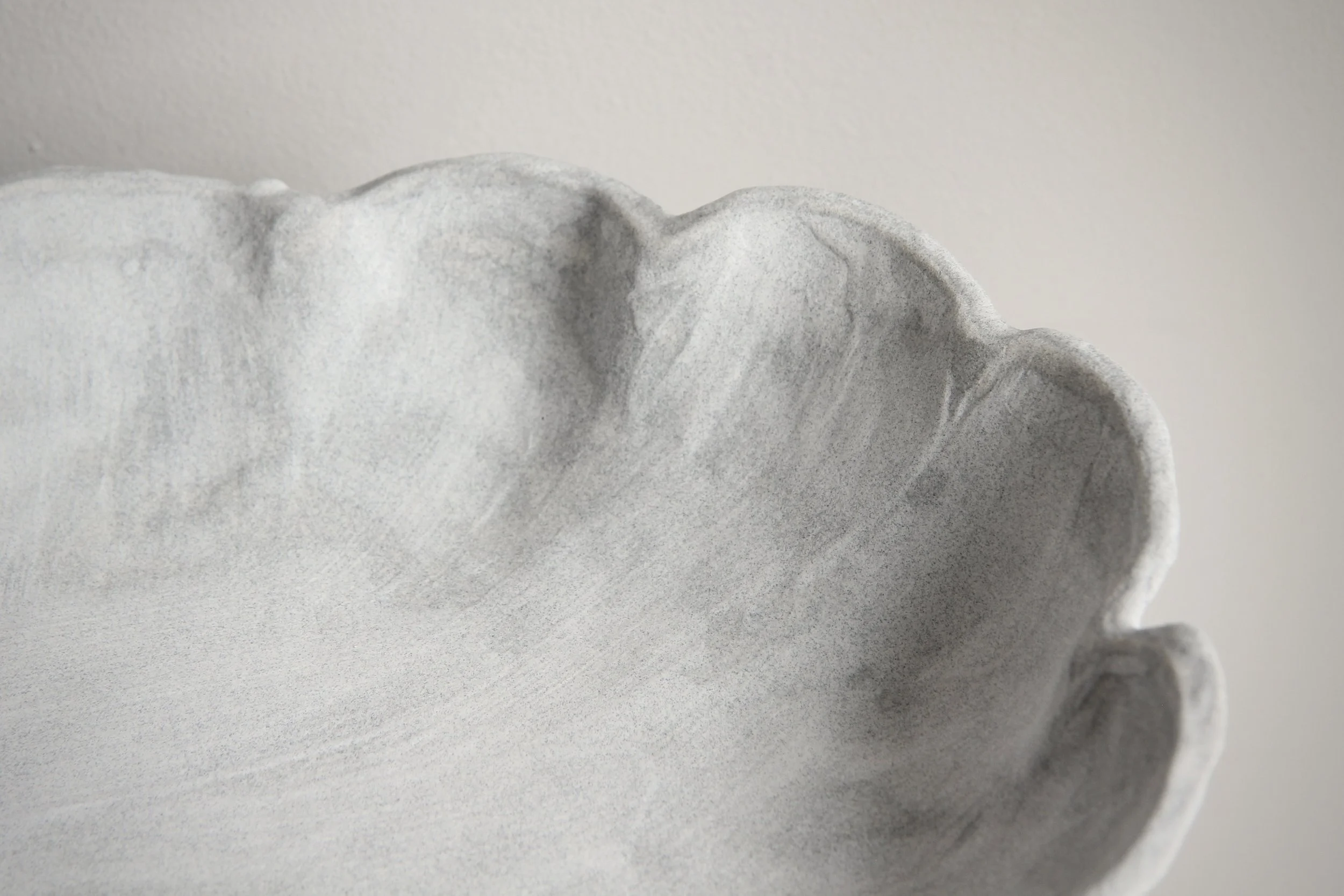 Limited edition hand built bowl made from a custom mold, organic shape inspired by seed pods in a textured pale blue gray glaze. Please note: because of the texture of this glaze, it is not considered food safe; use only for fruits or “dry” foods.
