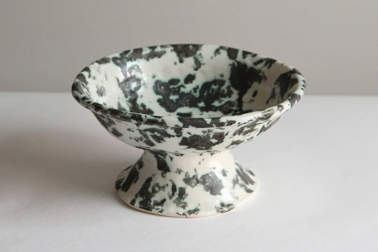 Bowl 93-123 › Lichen Pedestal Bowl Image 1 of 3 Image 2 of 3 Image 3 of 3 Lichen Pedestal Bowl $150.00 sold out One of a kind handbuilt pedestal bowl in white stoneware with sponge pattern glaze4” height, 8” width Get notified by email when this product is in stock. Sold Out Added! One of a kind handbuilt pedestal bowl in white stoneware with sponge pattern glaze4” height, 8” width