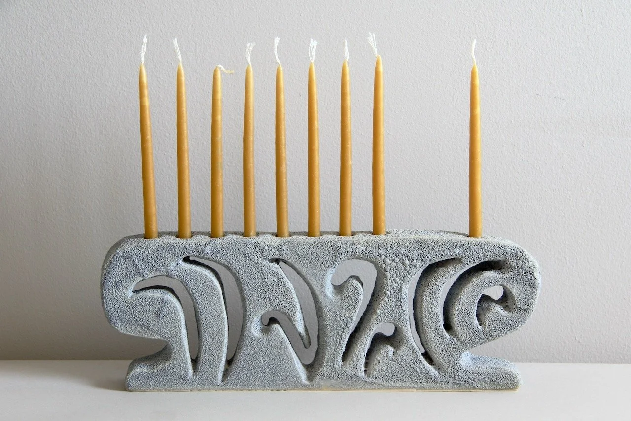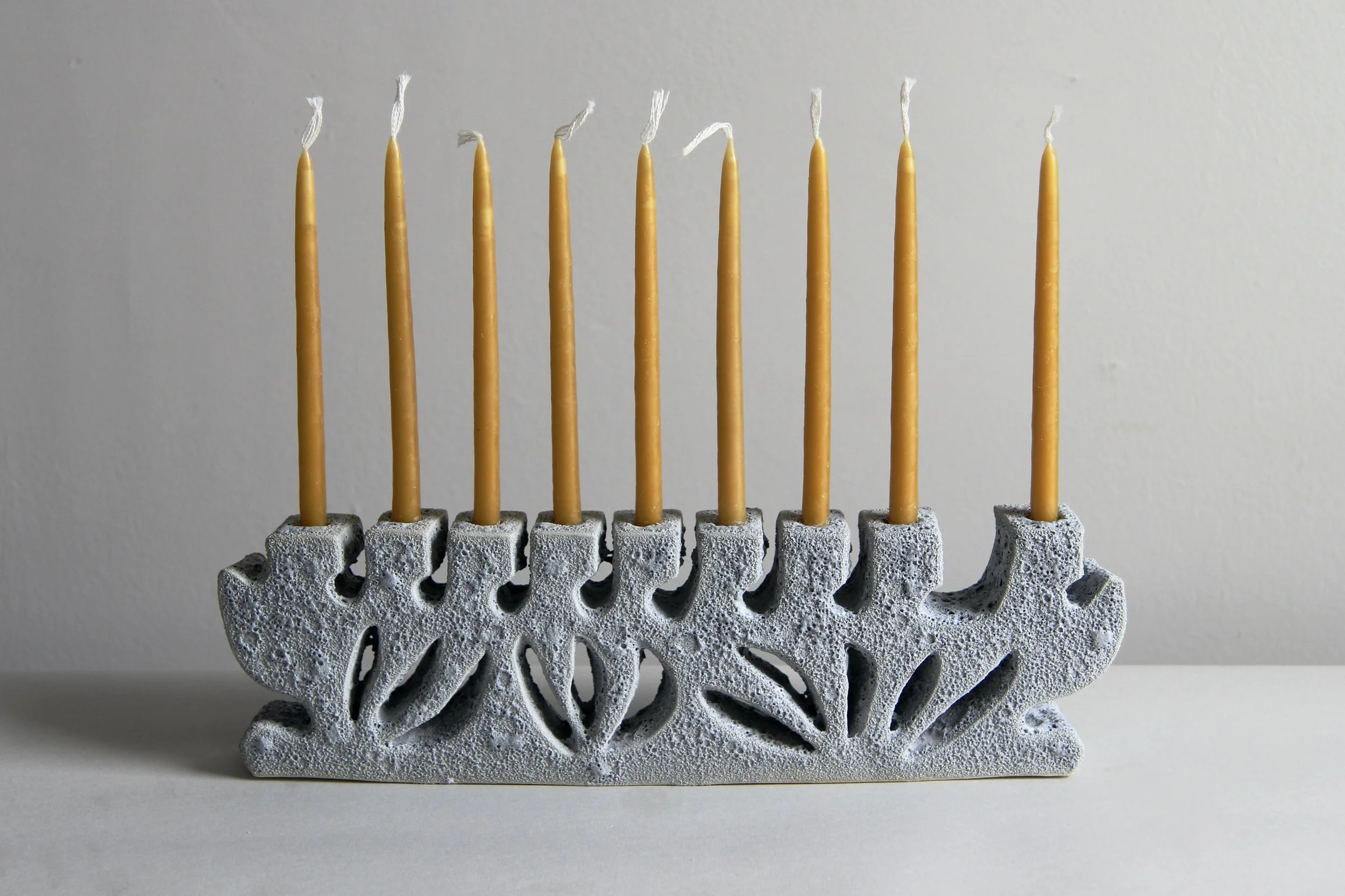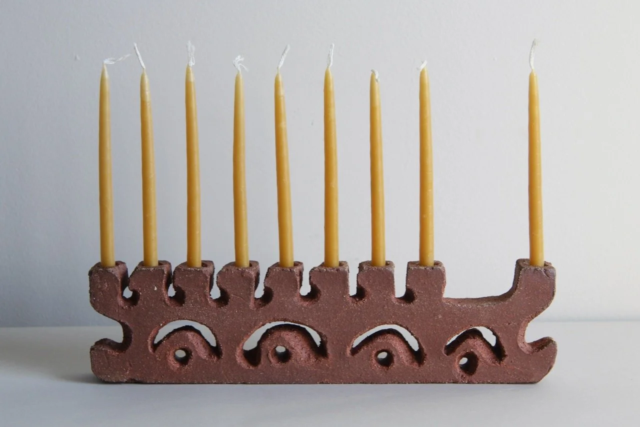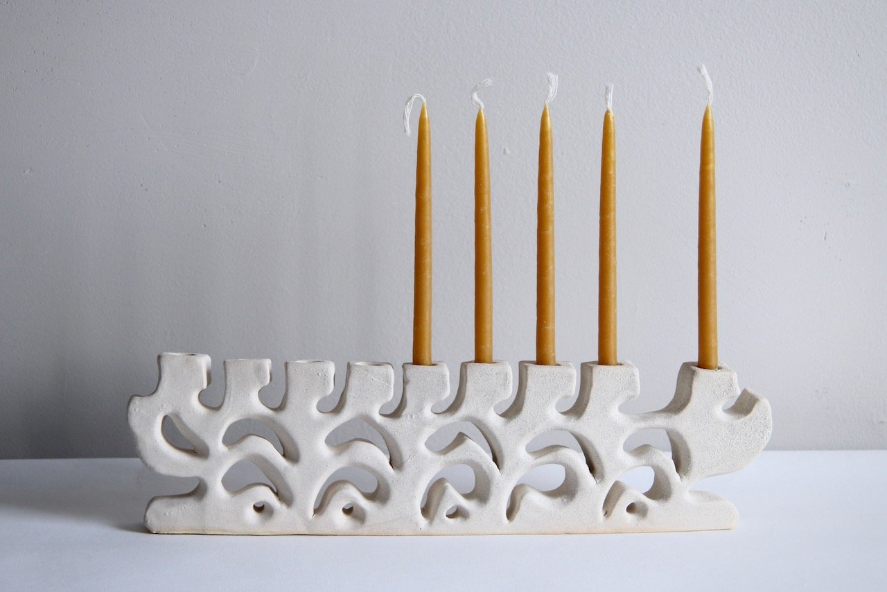 Menorah $300.00 Menorah Gray Crater $300.00 Sold out Menorah Gray Crater $300.00 Menorah $300.00 Menorah $300.00 Menorah $250.00 Menorah $250.00 Menorah $300.00 The Menorah FAQWhich candles do you use in the photos? These ones!How hard is it to get the wax off? Not too bad; take a look —> Curious to revisit menorahs that have come before? Take a look at the archive.