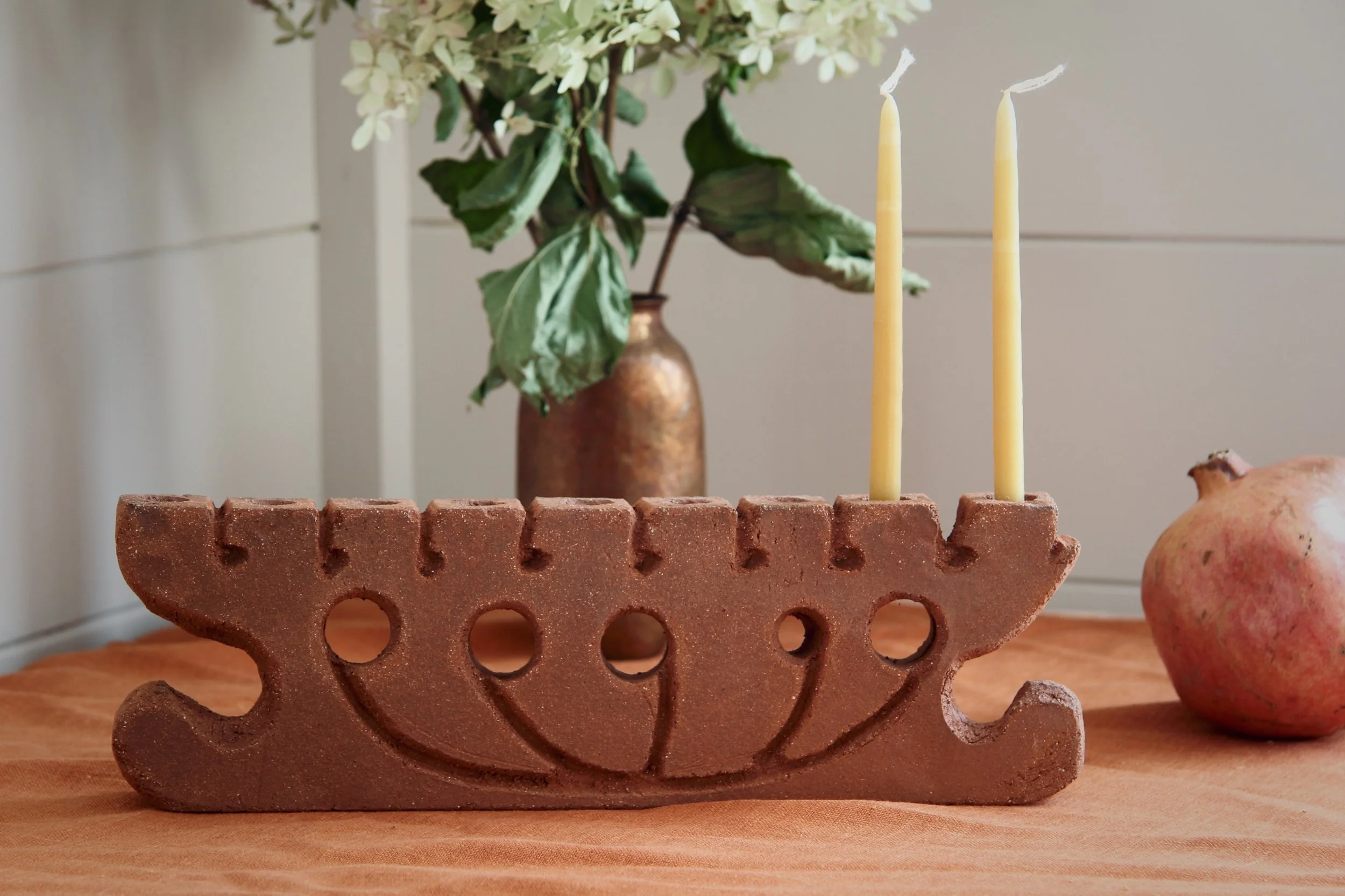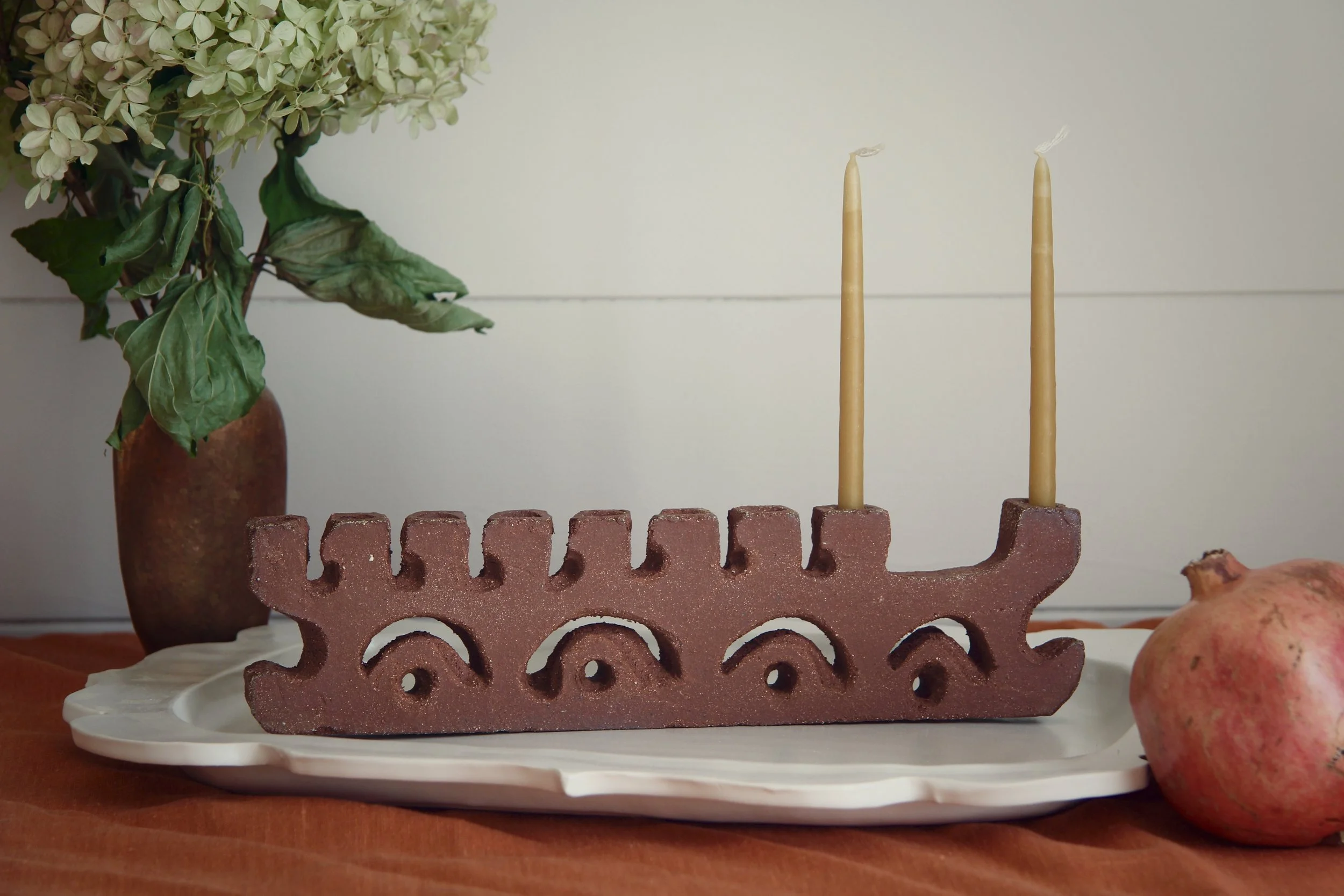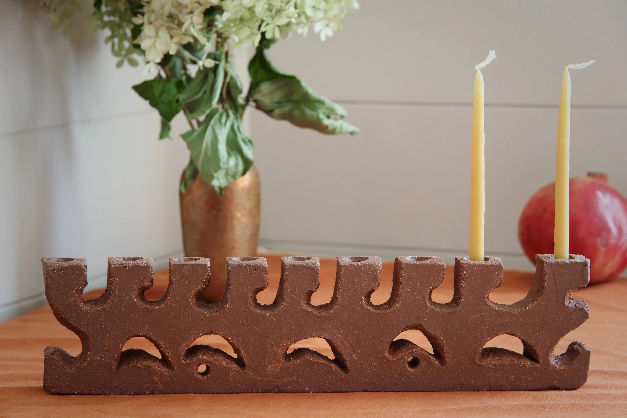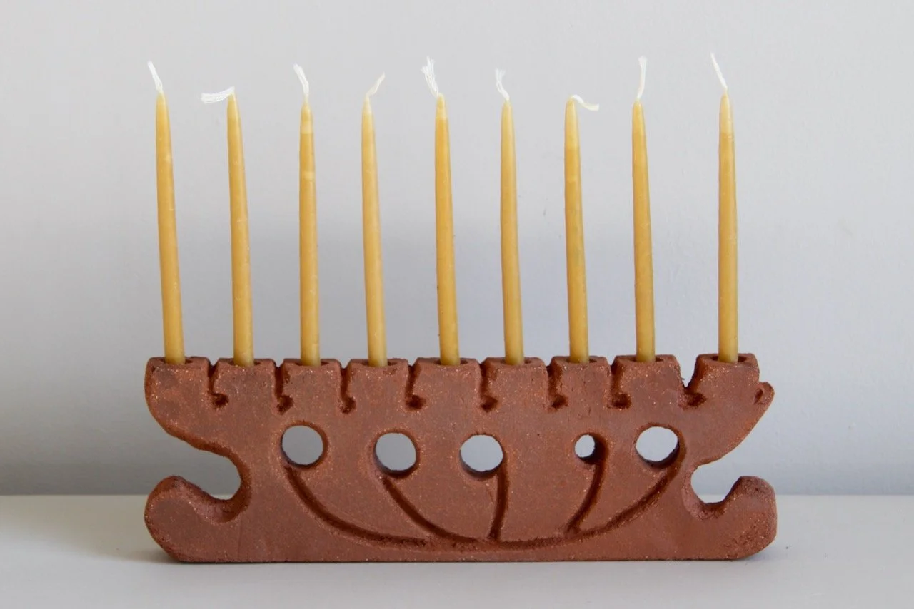 Menorah $300.00 Menorah Gray Crater $300.00 Sold out Menorah Gray Crater $300.00 Menorah $300.00 Menorah $300.00 Menorah $250.00 Menorah $250.00 Menorah $300.00 The Menorah FAQWhich candles do you use in the photos? These ones!How hard is it to get the wax off? Not too bad; take a look —> Curious to revisit menorahs that have come before? Take a look at the archive.