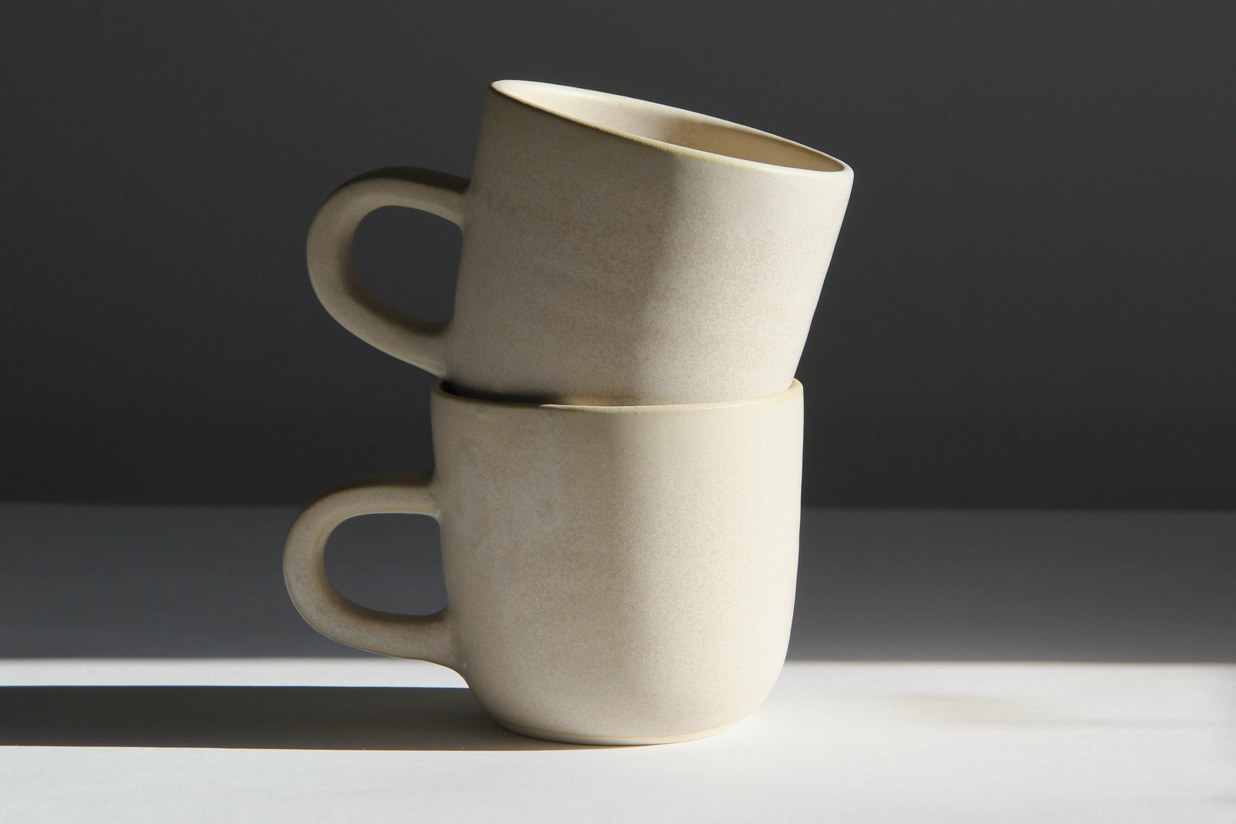 Slip cast mug— 3.75" diameter 3.5" height, holds 12 oz. of liquid