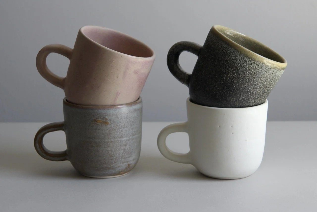 Slip cast mug— 3.75" diameter 3.5" height, holds 12 oz. of liquid