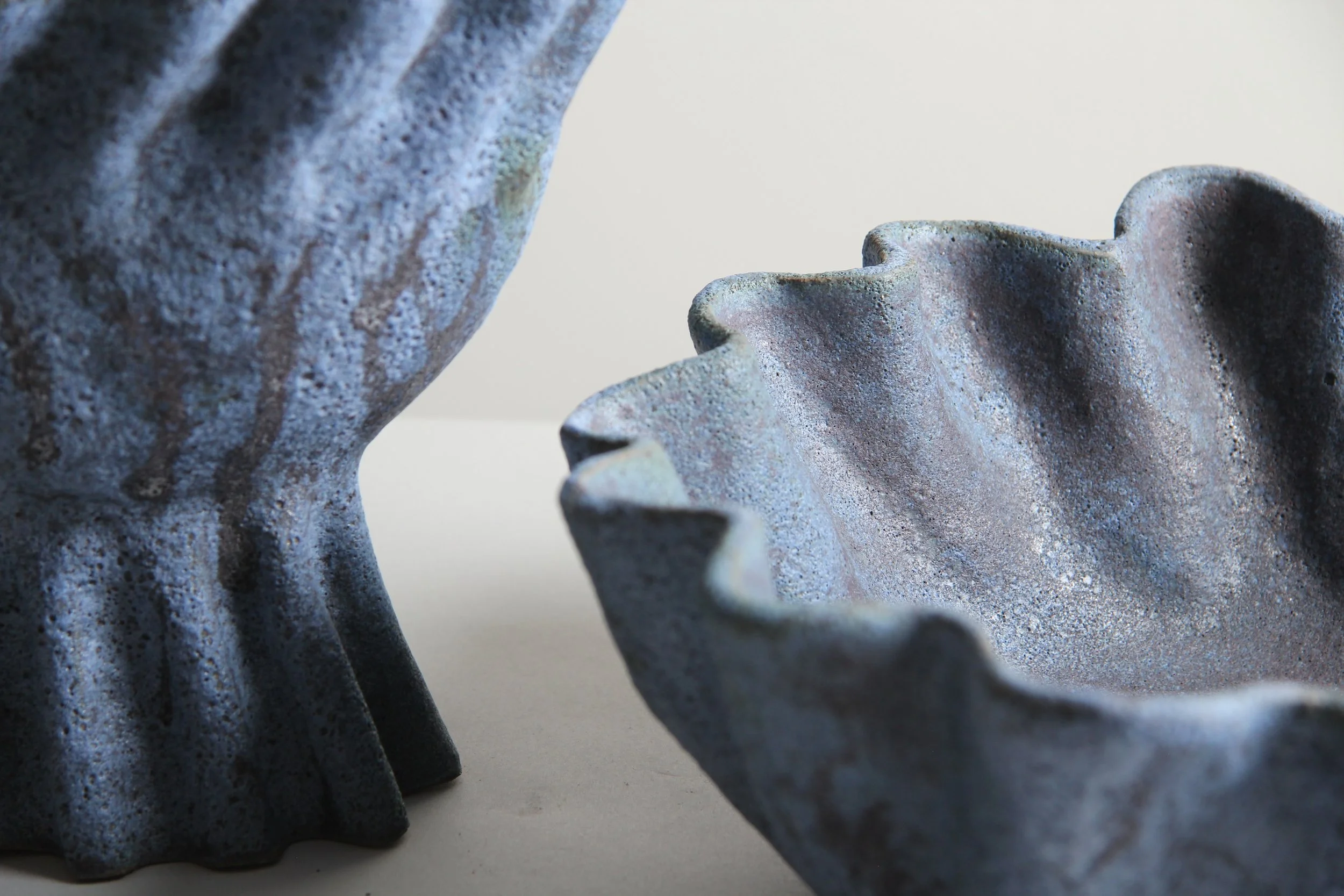 One of a kind handbuilt stoneware bowl with layered, textured cobalt glaze