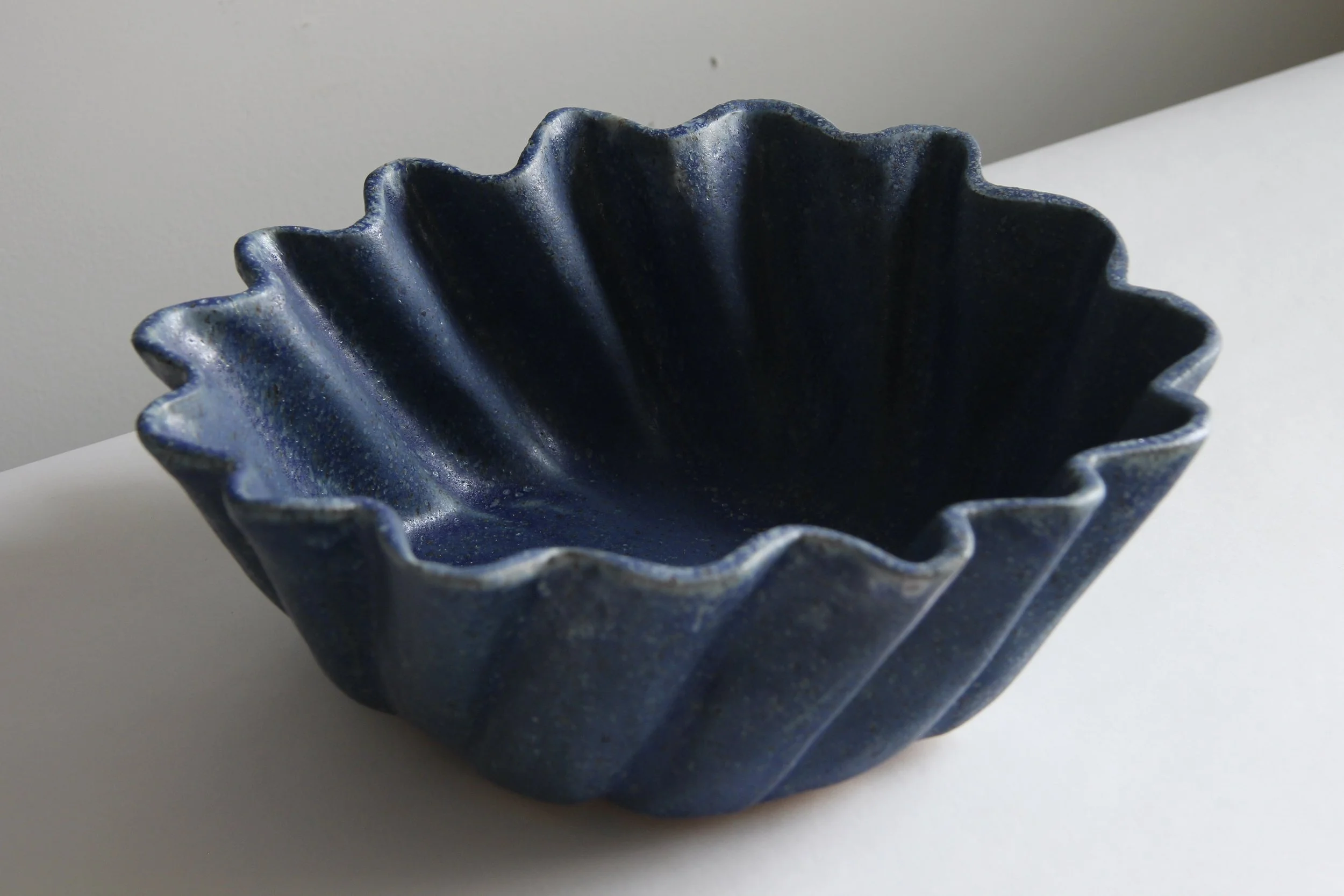Unique Serving Pieces › Deep Pleat Bowl Image 1 of 3 Image 2 of 3 Image 3 of 3 Deep Pleat Bowl $250.00 sold out One of a kind handbuilt stoneware bowl with blue glaze4” height, 12” width Get notified by email when this product is in stock. Sold Out Added! One of a kind handbuilt stoneware bowl with blue glaze4” height, 12” width