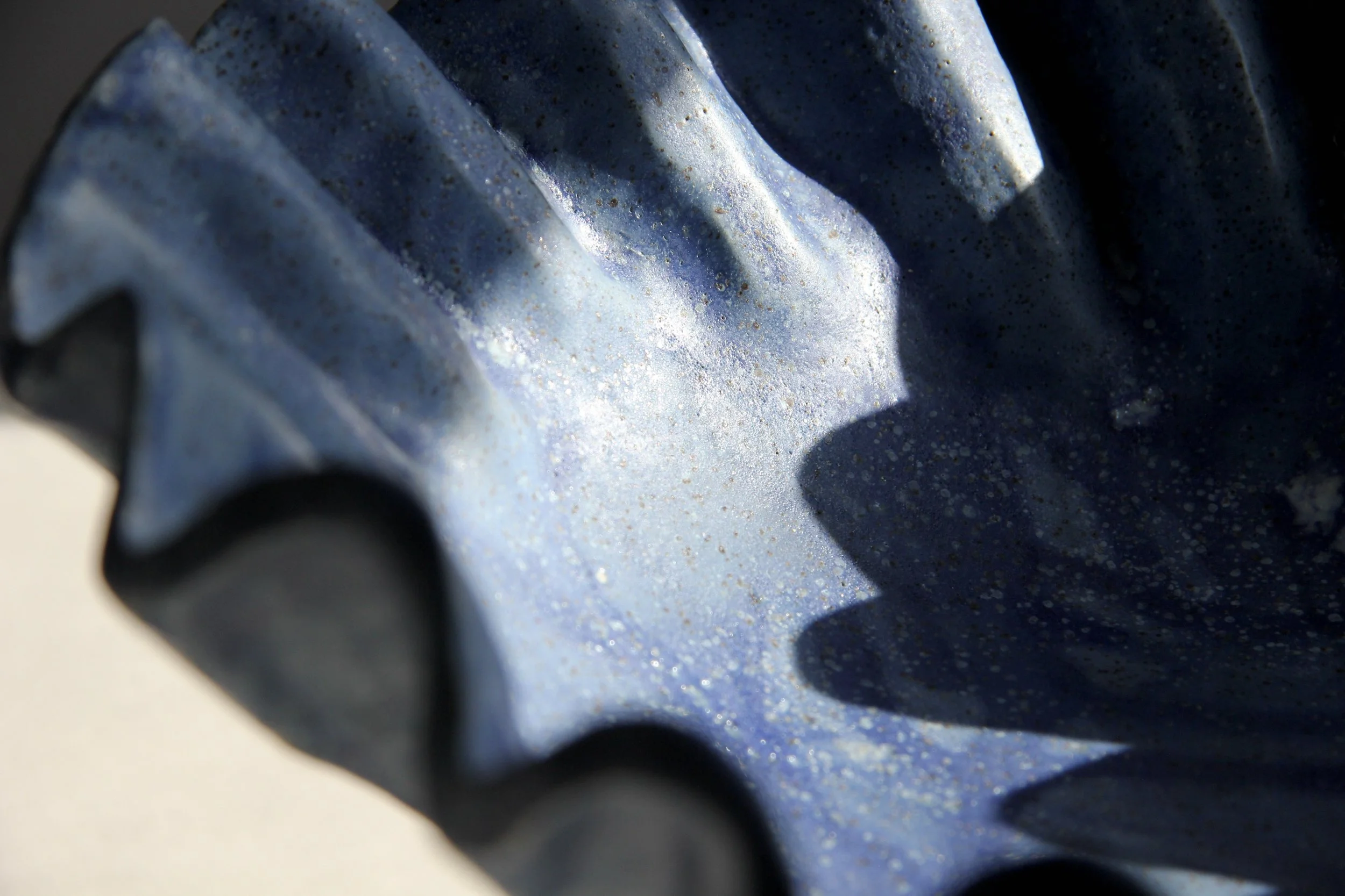 Unique Serving Pieces › Pedestal Bowl Image 1 of 2 Image 2 of 2 Pedestal Bowl $300.00 sold out One of a kind handbuilt double pleated stoneware bowl with layered white and cobalt glazes11.5” width, 7.5” height Get notified by email when this product is in stock. Sold Out Added! One of a kind handbuilt double pleated stoneware bowl with layered white and cobalt glazes11.5” width, 7.5” height