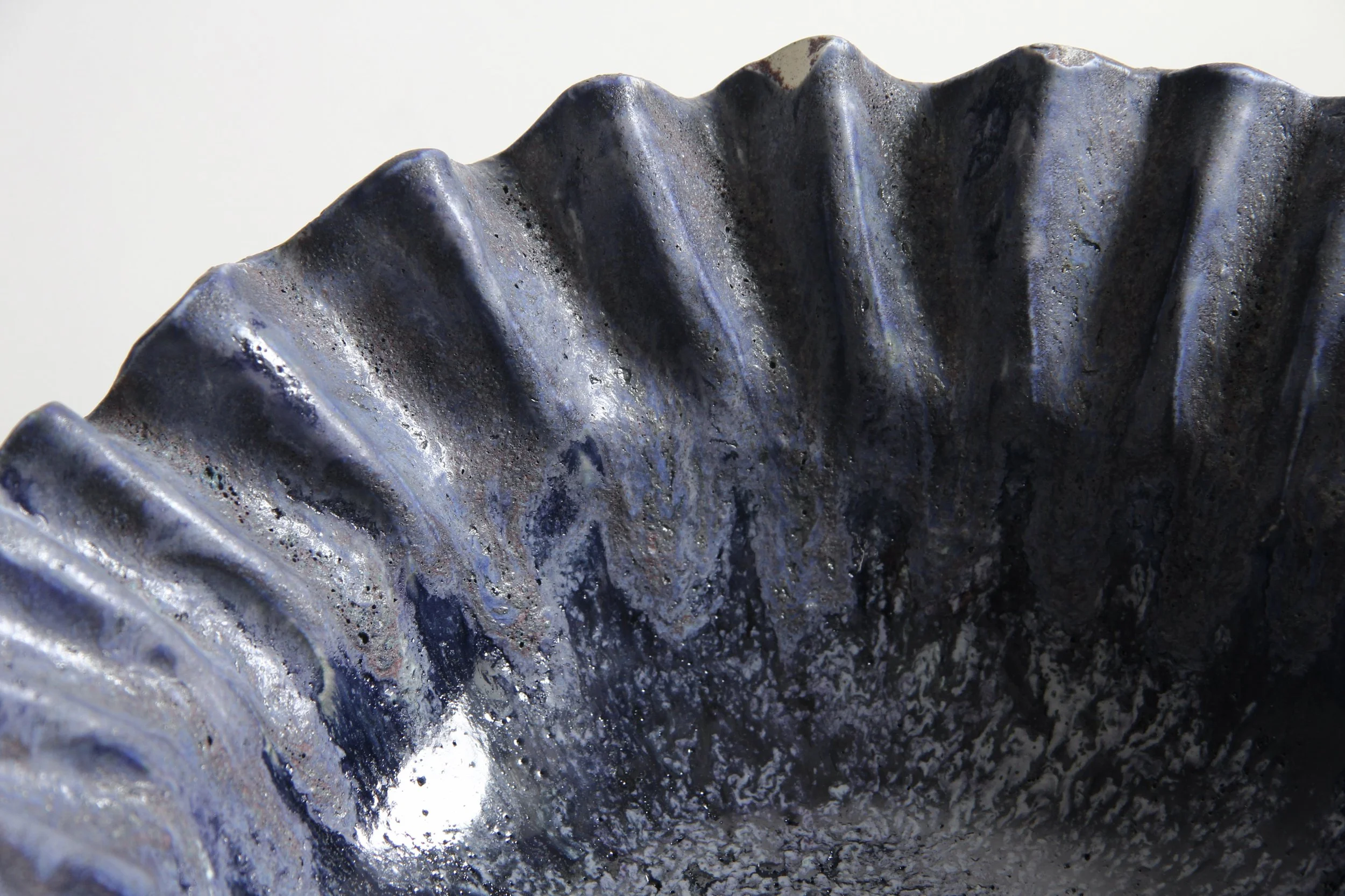 Unique Serving Pieces › Pedestal Bowl Image 1 of 4 Image 2 of 4 Image 3 of 4 Image 4 of 4 Pedestal Bowl $300.00 sold out One of a kind handbuilt double pleated stoneware bowl with layered blue glazes11.5” width, 7.5” height Get notified by email when this product is in stock. Sold Out Added! One of a kind handbuilt double pleated stoneware bowl with layered blue glazes11.5” width, 7.5” height