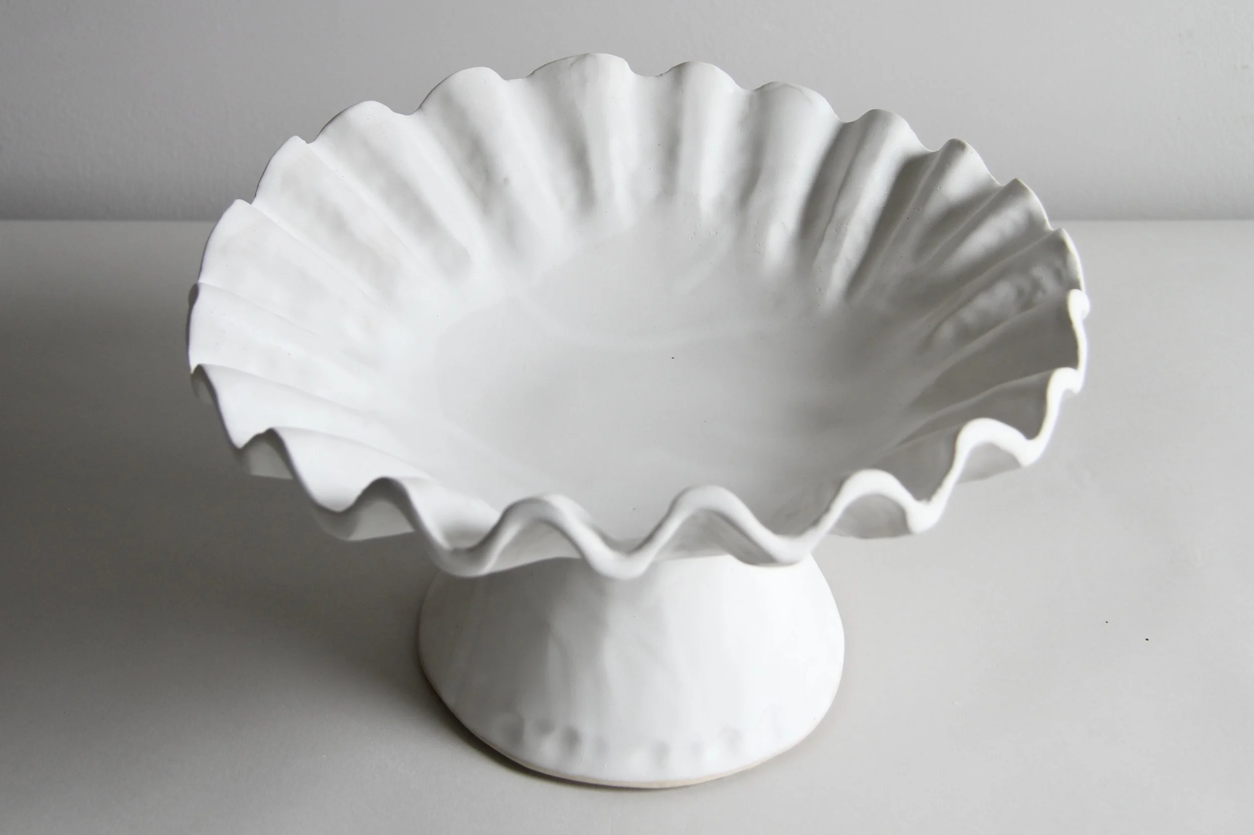 Unique Serving Pieces › Pedestal Bowl Image 1 of 2 Image 2 of 2 Pedestal Bowl $300.00 sold out One of a kind handbuilt double pleated stoneware bowl with matte glaze6.5” height, 11.25” width Get notified by email when this product is in stock. Sold Out Added! One of a kind handbuilt double pleated stoneware bowl with matte glaze6.5” height, 11.25” width