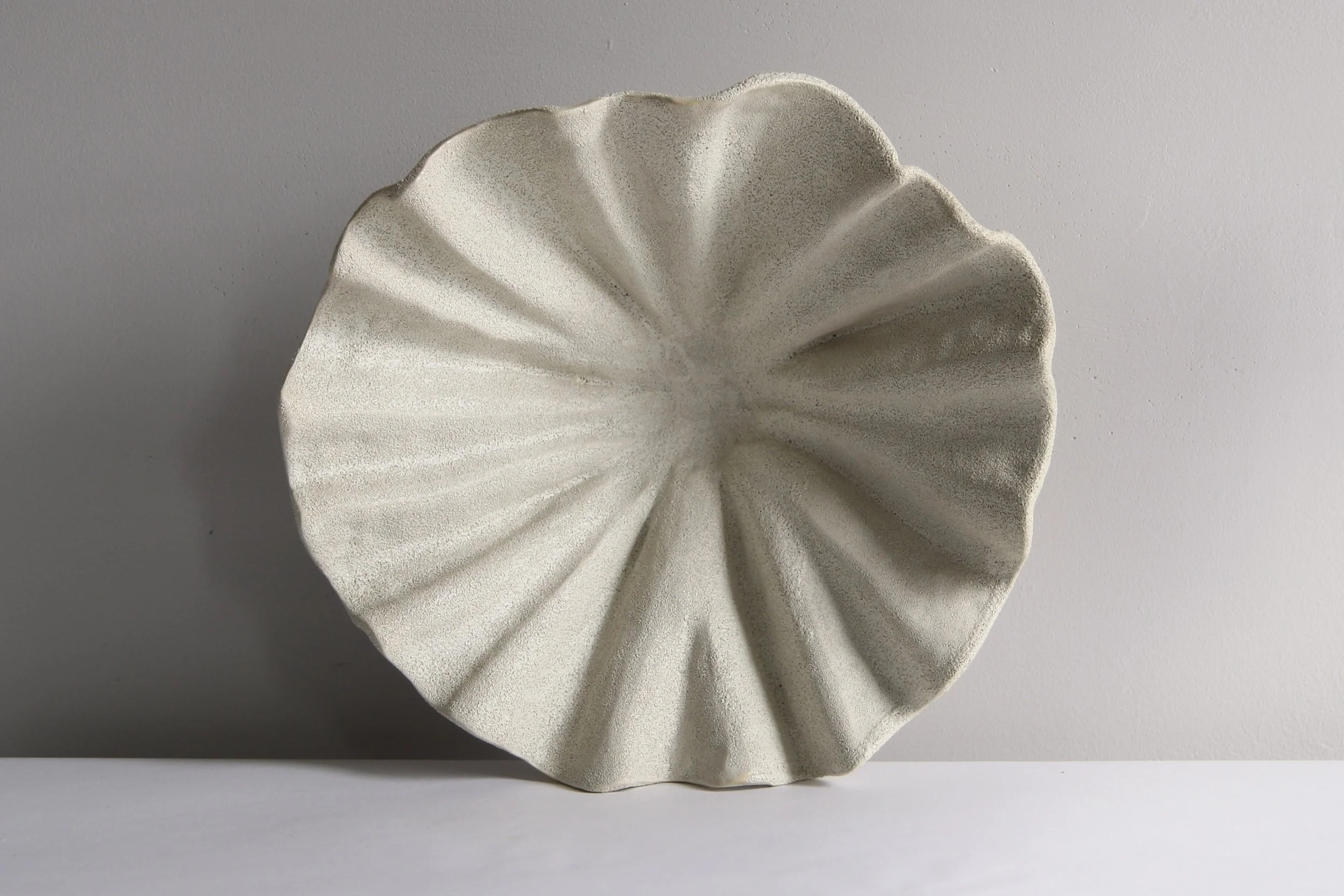One of a kind handbuilt sculptural bowl in white stoneware with textured creamy white glaze