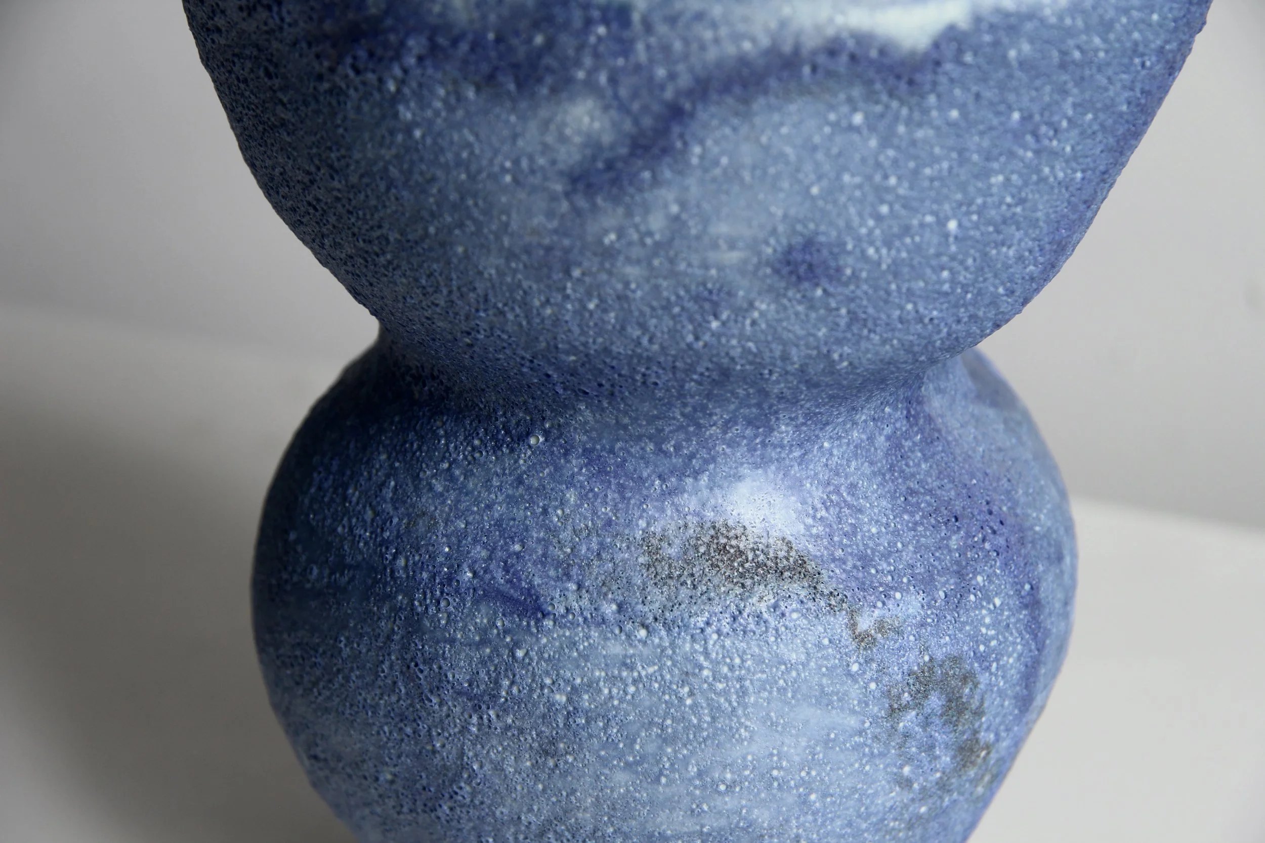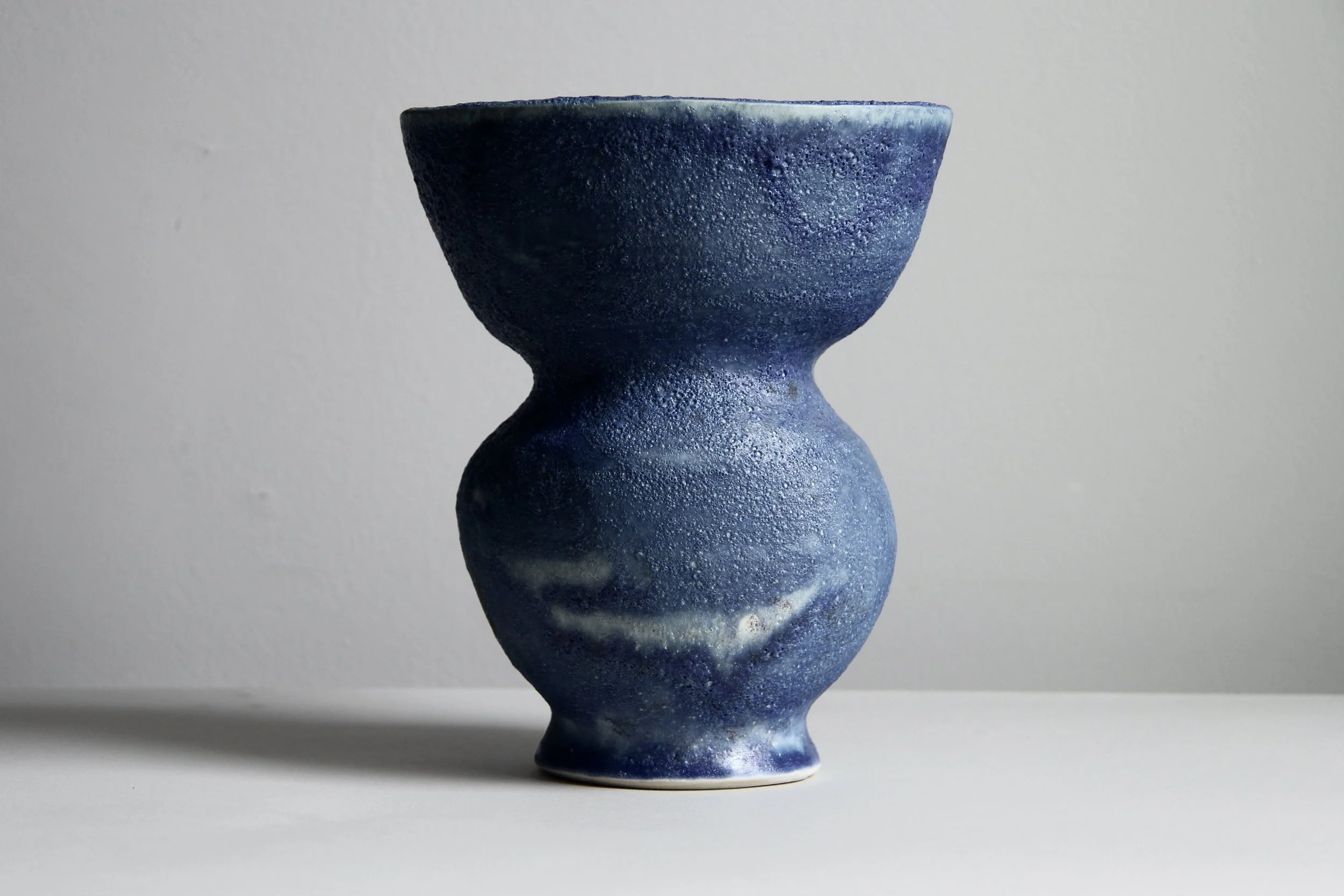 Vases › Blue Cosmic Vase Image 1 of 4 Image 2 of 4 Image 3 of 4 Image 4 of 4 Blue Cosmic Vase $250.00 Handbuilt vase — buff stoneware with textured blue glaze8” height Get notified by email when this product is in stock. Purchase Added! Handbuilt vase — buff stoneware with textured blue glaze8” height